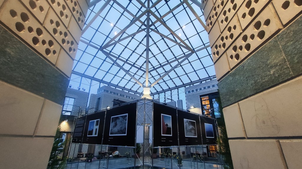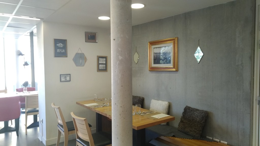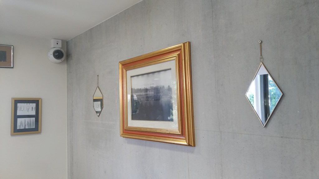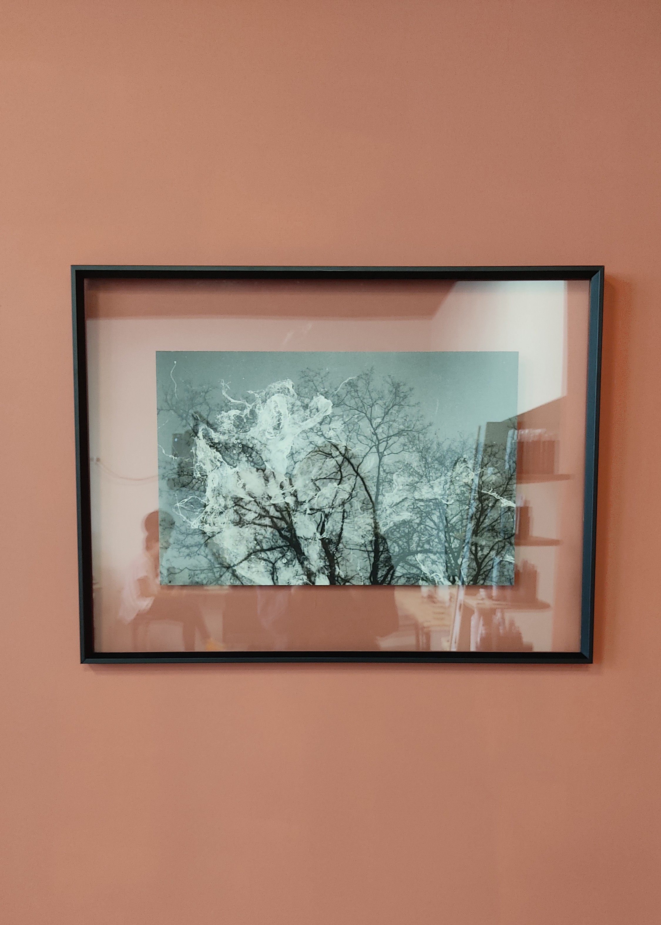 Le restaurant se trouve dans un ancienne usine de locomotives, dont l’architecture a été partiellement conservée pour dialoguer avec les constructions récentes dans le bâtiment. À la jonction entre différentes temporalités, le lieu a donc inspiré différentes constellations photographiques disposées sur les murs, permettant elles-aussi de tisser des liens entre passé et présent. Les images sont majoritairement des photographies argentiques ou Polaroïd, représentant des instants de vie et des architectures diverses, intemporelles car sans datation explicite. Ces techniques photographiques emblématiques du XXe siècle sont exposées dans des cadres neufs ou d’occasion, certains industriels et contemporains, d’autres artisanaux aux imposantes dorures, pour étayer l’interaction entre les différentes décennies qui caractérise le lieu.